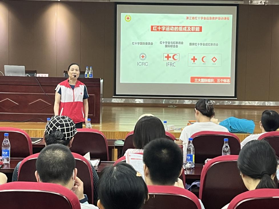 本次培训分为理论和实操培训考核两部分。学院邀请了绍兴市红十字会救护员培训老师到校授课。理论培训包括应急救护知识、避险逃生、灾害基础救援等,实操培训采取示范教学与实践操作相结合的形式进行,在加强理论学习的同时,重点培养实践操作能力。