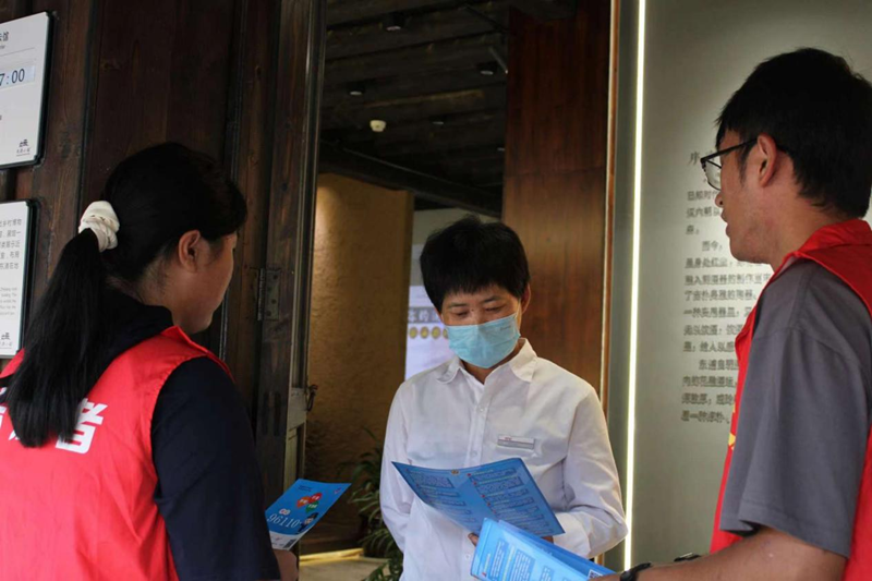 本次活动内容包括集镇商铺垃圾分类、防诈知识宣讲与规范交通安全宣传等。党员志愿者在认真听完专题培训后,在东浦街道社区工作人员的带领下前往东浦社区商业街开展主题宣传与宣讲活动。东浦居委会办公室副主任李彬为志愿者们点赞,“很感谢员工党员志愿者们能够积极主动地参与到社区工作中来,协助开展防诈防骗、交通安全与垃圾分类的宣传工作,共同助力和美集镇建设。”入党积极分子英语2201班王奕同学表示,“在实践中感受小镇的变化与发展,在和美集镇的建设中能贡献自己的微薄力量,是一件很有意义的事情”。