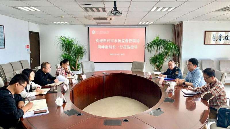 10月30日上午,绍兴市市场监督管理局副局长周峰一行来院调研食堂工作,学院副经理沈玮、资产经营公司相关负责人陪同调研。