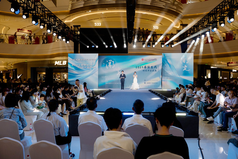 5月23日晚,学院2025届新生代时装毕业展演在绍兴龙湖天街璀璨启幕。学院经理沈红卫、党委副书记石旭明、教学总督导奚柏君,行业协会代表,服装、纺织、设计类领域企业嘉宾,师生代表等齐聚一堂,共同见证这场创意与匠心交织的视觉盛宴。本次展演吸引现场观众逾千人,线上直播观看量突破26万人次。