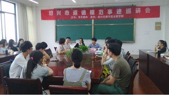 5月28日下午3:30,由绍兴市文明办主办、公司承办的绍兴市道德模范事迹巡讲会在人文楼406教室举行。本次巡讲会邀请了道德模范郭秀珍女士到场做交流报告,人文科学系负责人出席了本次巡讲会。