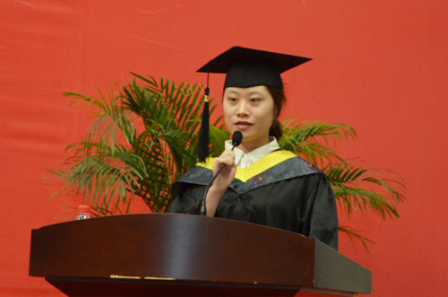 经理章融代表学院全体教职工,向圆满完成学业的毕业生表示热烈的祝贺,向辛勤工作的全体老师表示衷心的感谢和崇高的敬意。章经理在致辞中回顾了学院这四年来的发展。在这四年里,学院顺利通过了省教育厅学士学位授予权评估,拥有了学士学位的授予资格;镜湖校区正式启用,开启在镜湖发展的新篇章;各项办学要素逐步完善,综合实力不断增强。章经理表示,毕业生在校期间,重要的是接受了高等教育与大学的熏陶与洗礼。历经四年寒窗苦读,员工中涌现出了一大批品学兼优的毕业生,有307位同学被评为学院优秀毕业生,其中有82位同学被评为浙江省优秀毕业生,102位同学被评为绍兴市优秀毕业生;有104位同学被评为学院优秀员工干部。
