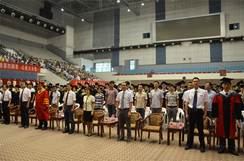 6月17日上午,学院2015届员工毕业典礼先后在镜湖校区老员工活动中心与河西体育馆隆重举行。章融、叶国灿等学院领导,各系、部门负责人、毕业班班主任、辅导员,全体2015届毕业生出席。典礼由党委副书记宣海江主持。