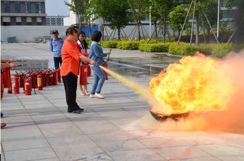 灭火演练开始前保卫处老师结合国内部分高校发生的火灾案例向现场师生员工讲解了火灾的危害、预防火灾的重要性以及本次演练的目的、意义。而后为现场的师生员工讲解灭火器和消防水枪的使用方法。接着各系部员工代表拿起灭火器对现场模拟大火进行扑灭演练。