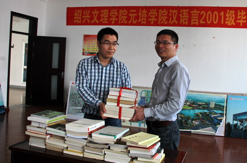 人文科学系党总支书记潘成刚老师、辅导员许婷婷也参加了本次同学会,潘书记对各位员工重聚母校表示热烈欢迎,同时向大家介绍了学院近十年来的快速发展和喜人变化,希望广大员工继续关注和支持母校的建设。同学会上,汉语言01级员工胡祖平还向学院捐献了两百多本图书,他希望学弟学妹们能秉承人文系的优良学风,增加自身的文化底蕴。