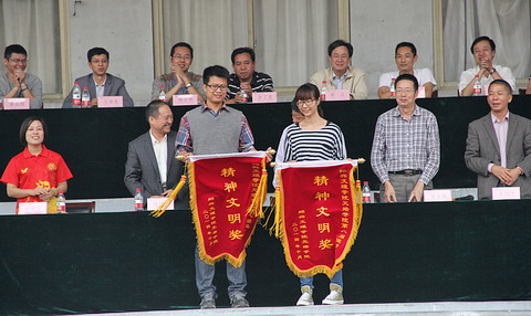 团委书记葛丛栩老师宣布精神文明奖获得者团体 此次运动会充分展现了全体师生积极进取、顽强拼搏、不畏艰难、勇攀高峰的旺盛斗志。章融书记希望全体师生保持和发扬这种精神,并将这种精神带到今后的学习和工作中去,继续有声有色地加强校园文化建设、扎扎实实地推进学院内涵建设和新校区建设,全面推动学院各项事业的发展。