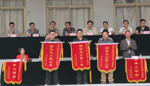 总裁判长余丁友老师宣布团体总分前三名获奖名单