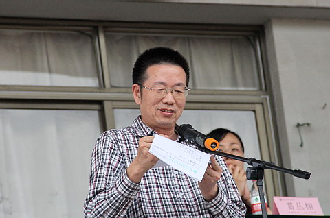 宣仕钱副经理宣布教工运动会获奖名单