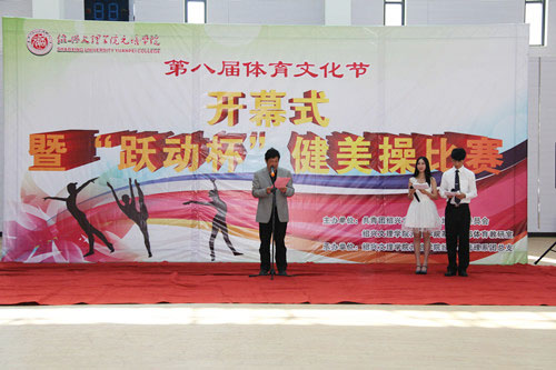 员工代表市场营销1202王汉城同学和裁判员代表基础课部体育教研室周赞老师老师也分别发言。开幕式上还举行了“悦动杯”健美操比赛。7个系的健美操争相竞美,最终,经济与管理系代表队以18.86的高分夺得桂冠,人文科学系、信息与电子系的代表队分获第二名和第三名。