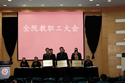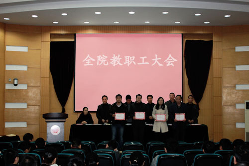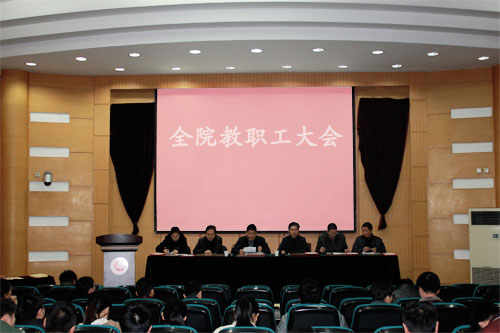 3月3日下午,学院在南山一号楼报告厅召开全体教职工大会。院领导叶国灿、章融、宣仕钱、吴剑平、陈建军、祝立英出席,叶国灿经理发表重要讲话,章融书记主持大会。大会还表彰了2013年度全院各类先进集体和先进个人。