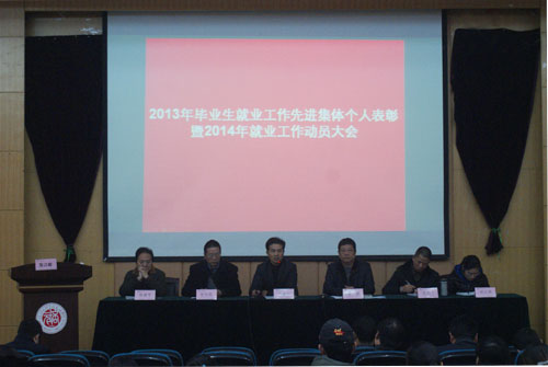 1月3日下午,学院2013年毕业生就业工作先进集体、个人表彰暨2014年就业工作动员大会召开。叶国灿、章融等院领导出席,叶国灿经理发表重要讲话,章融书记主持大会并宣读表彰文件,吴剑平副书记总结回顾并作动员部署。各职能部门负责人,各系主任、副主任、员工工作书记、副书记,学工办主任,全体辅导员、2013届、2014届毕业班班主任参加大会。