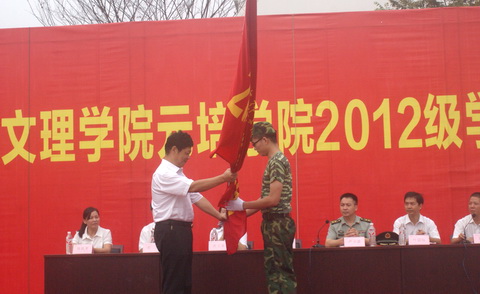 在开营式上,章融书记向军训团授团旗。
