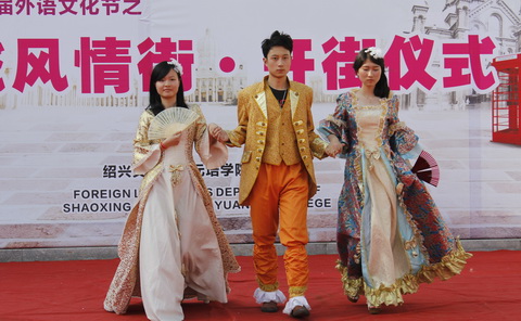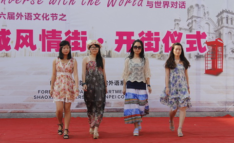 5月21日下午,由外语系主办的“与世界对话”第六届外语文化节之异域风情街开接仪式在镜湖校区公寓广场隆重举行。副经理陈建军、祝立英以及外语系、学工部、团委、员工公寓管理中心相关负责人、全体辅导员、员工代表出席了开街仪式。