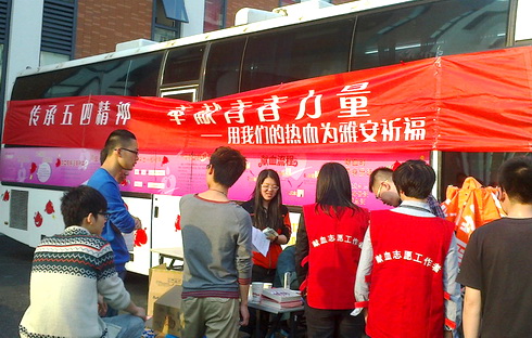 为纪念五四青年节,弘扬志愿服务精神,5月2日中午,由绍兴市中心血站、学院团委主办、学院青年志愿者协会承办的爱心献血活动在新校区公寓广场举行举行。