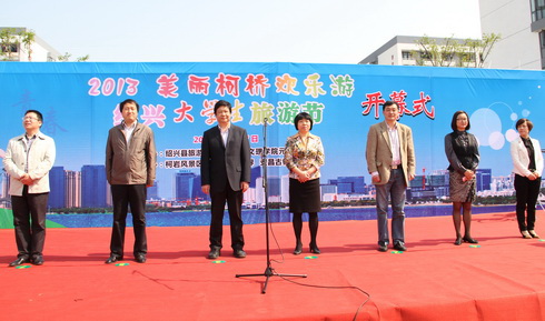 4月27日上午,2013“美丽柯桥欢乐游”绍兴首届老员工旅游节开幕式在学院新区举行。绍兴县副县长祝静芝、绍兴市旅游委员会副主任唐易宏、绍兴县旅游局局长沈秀娣等领导出席,学院领导章融、魏春初、经理助理、学工部部长俞国芬参加开幕式。
