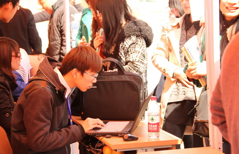信息与电子系开展的电脑义务维修活动同样吸引了很多同学。志愿者们的面前摆放了不少同学们的电脑,有让帮忙重装系统的,有让帮忙下载软件的,虽然忙得焦头烂额,但志愿者们仍微笑着说:“在帮助了别人的时候,还能将自己平时学到的知识运用到实践当中,可谓一举两得了。”