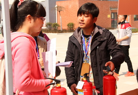 校园安全知识教育是一个永远不会过时但又是很容易让同学们疏忽的话题。当三个红色的灭火器赫然出现在活动现场,就连平时对安全教育毫不关心的同学也都被吸引了过去。保卫处的陈老师正聚精会神地向同学们演示灭火器的正确的使用方法。同学们专心致志地听着,记着,也有胆大的同学跃跃欲试,拿过灭火器亲身体验一下。当记者问到,一天下来,重复地演示,重复地讲同样的内容,会不会觉得很累很烦时,陈老师一脸认真地说:“镜湖新校区的情况比较特殊,周边安全环境相对复杂,所以我们才要加强宣传有关这方面的知识。只有不断地说,重复地说,不厌其烦地一遍遍说,让同学们都能掌握安全知识,才能保障大家的安全。”