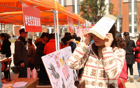 活动在中午的时候达到高潮,各个活动点都挤满了人,小小的广场上热闹得不得了。像“修修修,我是一修——公寓维修报修”,教学事务咨询岗等活动点前,很多同学都排队等着登记自己的问题。“南山镜湖,天涯咫尺”这个名字充满了温馨的味道。这是图书馆为方便镜湖校区的同学们借书而开展的代借书活动:根据同学们的需求,志愿者们帮助登记书名,并在南山图书馆找到书交给需要的同学,从而给镜湖校区的同学搭建了一个很好的借书平台。此外,员工党员接待点的党员志愿者们在做着必要工作的同时还热心的引导同学们到适合的摊位前寻求帮助。