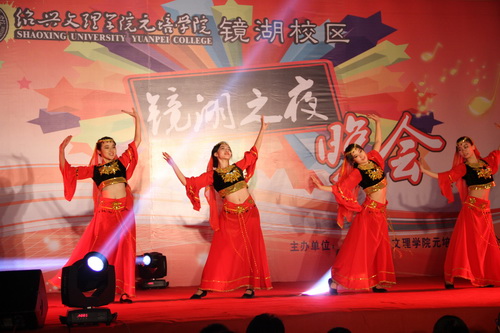 此次“镜湖之夜”晚会是学院首批师生入驻镜湖新区的一次大型文艺活动,院团委精心组织,在节目上精挑细选并进行了演出前的认真排练。晚会分为上篇(薄暮)、中篇(入夜)、下篇(夜阑)三个部分。上篇囊括小品、歌曲和舞蹈等多种表演。其中当以小品剧《灰姑娘》最令人印象深刻,它以反串灰姑娘为亮点,加入搞笑元素、别出心裁的演绎颠覆了我们记忆中的童话,带来阵阵笑声。而“入夜”篇中的《Dangerous》和《江南style》更是把晚会推向了高潮,现场叫好连连、掌声不断。晚会尾声,由沈谊、朱小燕两位实力派唱将带来的《让梦冬眠》更是给了现场观众视觉和听觉上的双重盛宴,再次将晚会推向了高潮。