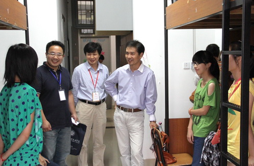 9月13日下午和晚上,叶国灿、章融等院领导在各系员工工作书记、学工办负责人、新生班主任和辅导员的陪同下,分别走访员工寝室亲切看望刚刚入学报到的2012级新生。