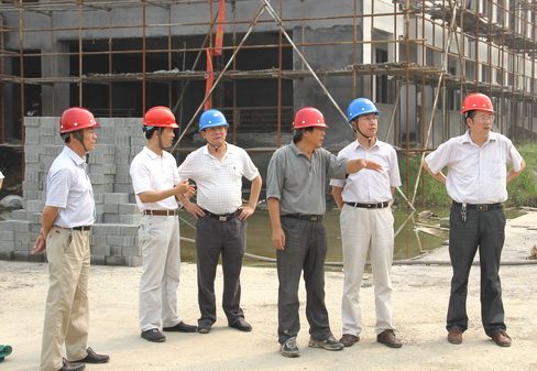 8月30日上午,校领导周达军、叶飞帆、唐和祥等在有关部门负责人陪同下视察了学院新区建设工地,叶国灿等院领导以及迁建办有关人员汇报了新区建设最新进展情况。