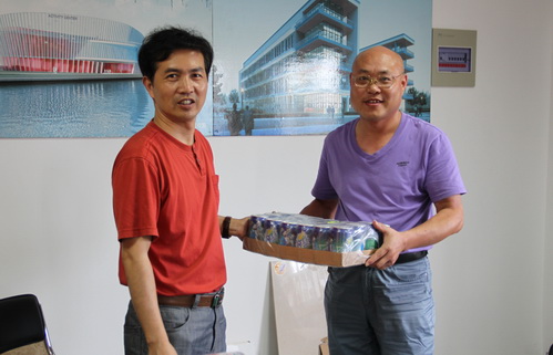 7月6日,叶国灿等院领导赴学院新校区工地,慰问仍冒着高温酷暑奋战在建设一线的学院迁建办工作人员和建筑工人。叶经理代表学院送去了饮料、毛巾等慰问品并向他们表示感谢。