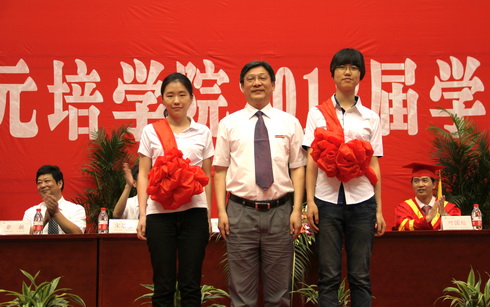 “同学们将从这里出发,踏上人生新的征程,今后,无论何时何地,无论是在人生得意时,还是身处逆境时,都请记住自己是元培的一分子。”信息与电子系钱贤民教授代表教师发言,他谆谆告诫同学们在奋斗的过程中要相信自己的能力,去试一试、搏一搏、拚一拚,激发出潜能,为理想的实现而不懈奋斗。毕业生代表,省级优秀毕业生外语系英语0804班张丹峰同学发言,他特别感谢母校四年的培养,并在将来的工作中将继续努力,为社会做贡献,为母校争光。经济与管理系国贸0901班庄卓君同学在发言中表示将以学长、学姐为榜样,在学业上努力奋斗,争取创造更加优异的成绩。