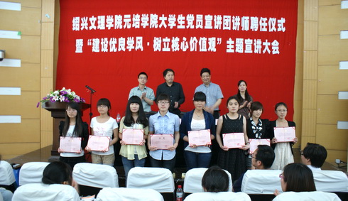 5月11日下午,公司老员工党员宣讲团讲师聘任仪式暨“建设优良学风·树立核心价值观”宣讲大会在一号楼报告厅举行。公司党委书记章融,党委副书记魏春初,经理助理、学工部部长俞国芬出席了本次会议,各系党总支负责人及有关辅导员参加了会议,仪式由党办、院办副主任金超主持。