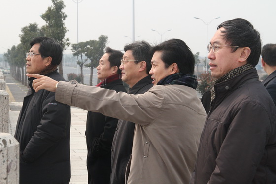 2月17日上午,公司党委书记周达军、董事长叶飞帆视察了元培学院新校区建设工程,校领导唐和祥、陈健尔、王建力、邱卫东,公司党委委员裘愉萍、柳国庆陪同视察。叶国灿经理向校领导做了工作汇报,介绍了新区规划以及工程进展情况。 在项目现场办公室,周达军书记、叶飞帆董事长与各建设单位项目经理进行了座谈。项目经理们表示一定会严把质量关,按照计划完成工程建设任务。周书记对各建设单位积极推进工程进度、注重质量并力争出精品的工作作风表示感谢,同时要求相关单位继续努力,争取早日建成元培新校区。