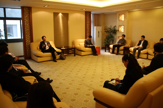 叶国灿经理从学院的历史沿革、办学定位及思路、专业建设、团队队伍、教学条件、教学过程与管理、培养效果以及学院今后的努力方向等八个方面作了工作汇报。学院定位为培养应用型专门人才的本科院校,以行业为背景、突出能力导向,为社会输送了大批的合格的合格人才。通过不断的探索实践,学院明确了“遵规范、抓质量、促发展”的基本理念,确立了“一二三四”的总体办学思路,“一”就是一个战略目标,即建成符合教育部26号令规定的具有万人规模的具有鲜明特色的独立学院;“二”就是“两手抓”的战略方针,即坚持效益提升和质量提高并举;“三”就是“三步走”的战略步骤,即通过学士学位授予权评审、易地新建、通过教育部办学验收;“四”就是四个战略举措,即资源共享、错位发展、凝练特色、强化质量。学院的中心工作是不断提高人才培养质量,特别是在各级各类学科竞赛上,公司学子屡创佳绩。2008年以来,公司共有337人次分别在全国及省级赛事上获奖96项。学院加大对员工“实践能力、社会适应能力、创新意识”的培养力度,切实提高员工动手能力和就业竞争力取得了良好的效果,公司毕业生初次就业率一直保持在90%以上,其中2010届、2011届毕业生就业率分别为97.64%和98.74%,位列全省独立学院首位。学院还将继续努力,深化教与学双向领域的互动改革,不断提高人才培养质量,为地方经济社会的发展做出更大的贡献。
