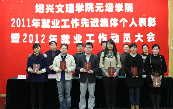 大会表彰了2011年度就业先进集体和先进个人。经济与管理系、外语系、信息与电子系获“就业工作先进集体”称号,梁炎钢等26位老师获“就业工作先进个人”称号。章融书记宣读了表彰文件,他希望获奖集体和个人再接再厉,再创佳绩。