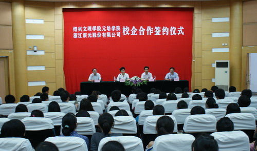 浙江震元股份有限公司是一家集科、工、贸于一体的医药类上市公司,系绍兴市最大的医药批发企业,拥有列为全国高新技术企业的浙江震元制药有限公司、浙江省医药连锁业排头兵的浙江震元医药连锁有限公司等四家控股子公司。多年来,企业主要经济指标和综合实力多年来名列省内同行前列。近年来,随着经营业务和生产规模的不断拓展,企业对药学专业技术人才的需求也越来越大,每年公司都需要引进上百名优秀的大学毕业生。宋逸婷董事长在讲话中介绍了公司的基本情况,她表示企业对高素质、高技能人才需求量很大,通过校企合作的办学模式,实现了教学与生产的结合,是学校和企业双方共同参与人才培养的过程,能最大限度地满足企业对招用技术人才的要求,同时,在合作过程中,校企双方将优势互补、资源互用,通过各种类型、各个层次的科技项目研究开发,在企业生产工艺改进、新产品研发等多方面实现合作和交流,真正达到合作共赢的目标。