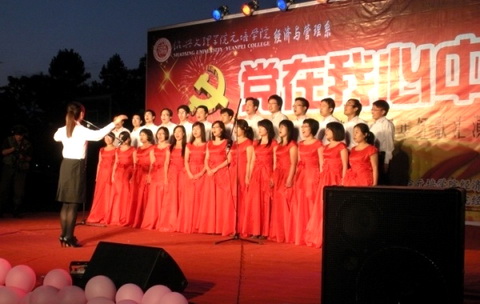 5月24日晚,经济与管理系 “党在我心中”建党90周年红歌汇演在南山篮球场举行,来自经管系各党支部、团总支及党校学习班的16支队伍近五百名师生共同唱响党的赞歌。公司党委书记章融等学院领导和经管系2000多名师生共同观看了演出。
