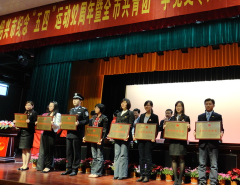 5月3日下午,共青团绍兴市委召开纪念“五四”运动92周年暨 “学党史、知党情、跟党走”活动动员大会,市委副书记谭志桂等领导出席。会上表彰了绍兴市一批先进团组织和个人,学院团委荣获了2010年度“绍兴市五四红旗团委”称号。这是全市共青团系统的集体最高荣誉,本年度全市仅有8个各级各类基层团委获此称号。
