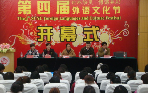 祝立英副经理在开幕式上致辞时表示,外语文化节充分结合了专业特点,活动内容丰富、形式多样,能够让广大学子在轻松愉快的氛围中感受到外语学习的无穷魅力。外语文化节打开了一扇了解异国文化的窗口,同时也丰富了老员工课余文化生活,有助于激发员工学习外语的热情,通过外语文化节的开展将进一步提高员工的听说读写能力。外语文化节是外语系的一大特色,并成为学院校园文化的一项品牌活动。祝副经理希望同学们释放激情,积极参加文化节各项活动,全面提高自身的外语文化素养。祝副经理最后用英文宣布,外语系第四届外语文化节正式开幕。