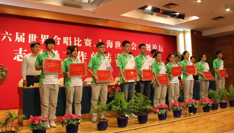 公司团委在本次世合赛及世博主题论坛中积极组织参与志愿者服务工作,全力配合完成各项任务,组织管理工作突出,志愿服务工作部署严密,得到了上级及团市委的一致肯定,并在大会上得到了表彰。其中,公司“合唱接待服务团队”被评为第六届世界合唱比赛志愿服务优秀团队。