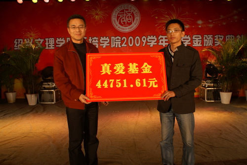颁奖典礼上,魏佩敏副书记代表学院接受了工程与技术系叶柳波同学的“真爱基金”捐赠,全院2049名员工参加了捐赠,共募得善款44751.61元。