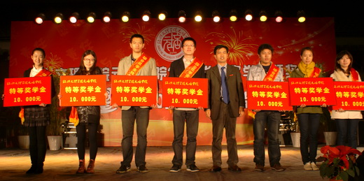 11月25日晚,学院2009学年奖学金颁奖典礼暨2010级新生晚会在河西体育馆隆重举行,院领导叶国灿、陈伟鸿、宣仕钱、魏佩敏、陈建军、公司党委委员金自学出席,各系(部)、职能部门负责人、全体辅导员、2010级班主任、2009学年各类奖学金获得者、先进班集体代表,以及全体2010级员工参加。学工部部长俞国芬主持颁奖典礼。