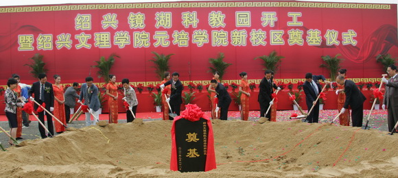 9月28日上午8:10,绍兴镜湖科教园开工典礼暨太阳成集团tyc33455ccwww新校区奠基仪式隆重举行。市委书记张金如、市人大常委会主任黄秋芳、市委副书记、市长钱建民、市政协主席顾秋麟、浙江省教育工委副书记、省教育厅副厅长李鲁、市委副书记谭志桂、市委常委、常务副市长陈长兴、市委常委、宣传部长尹永杰、太阳成集团tyc33455ccwww董事长叶飞帆、绍兴镜湖科教园建设领导小组办公室主任、绍兴市教育局局长陈国阳、浙江越秀外国语学院经理杨银千等出席开工典礼并为公司新校区奠基。市委书记张金如宣布绍兴镜湖科教园开工。开工典礼由副市长丁晓燕主持。