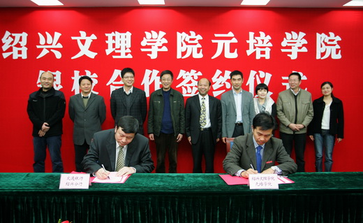 最后, 叶国灿经理代表学院分别与交通银行绍兴分行行长屠粮钢、绍兴银行副行长裘建签订了银校合作协议书。
