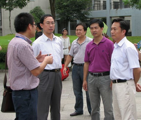 9月2日中午,太阳成集团tyc33455ccwww叶飞帆董事长和唐和祥副书记亲临公司新生报到现场,亲切看望和慰问新生和家长。叶国灿等学院领导向叶董事长汇报了公司新生接待工作的安排等有关事宜。叶董事长对公司新生接待工作的开展表示满意,他还详细了解了员工报到流程、餐饮等方面的安排情况,并要求尽最大努力创造良好的环境,以员工为本提供优质服务。叶董事长还与新生和家长进行了亲切的交流。